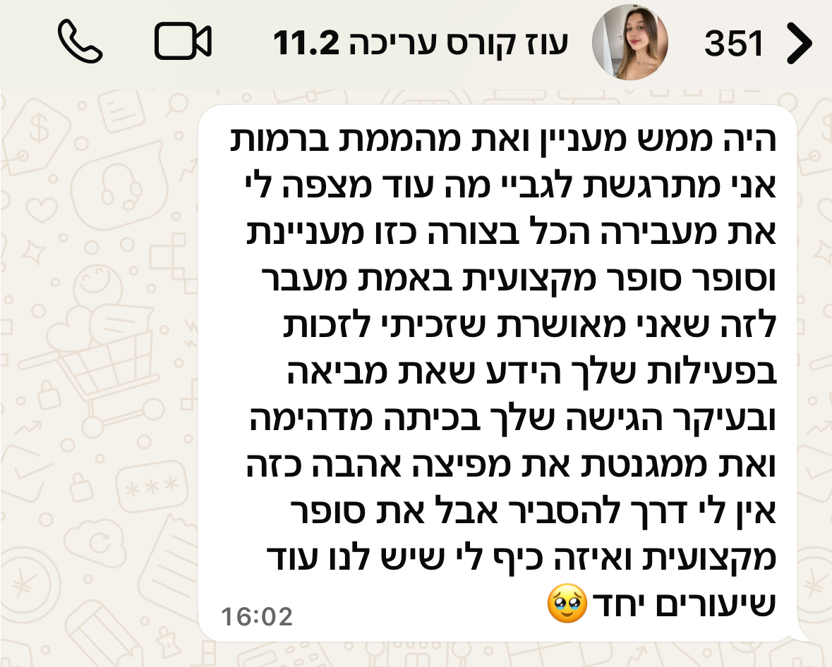 שמלמד את יסודות העריכה כדי שתגיעי בטוחה ומוכנה למפגש הראשון